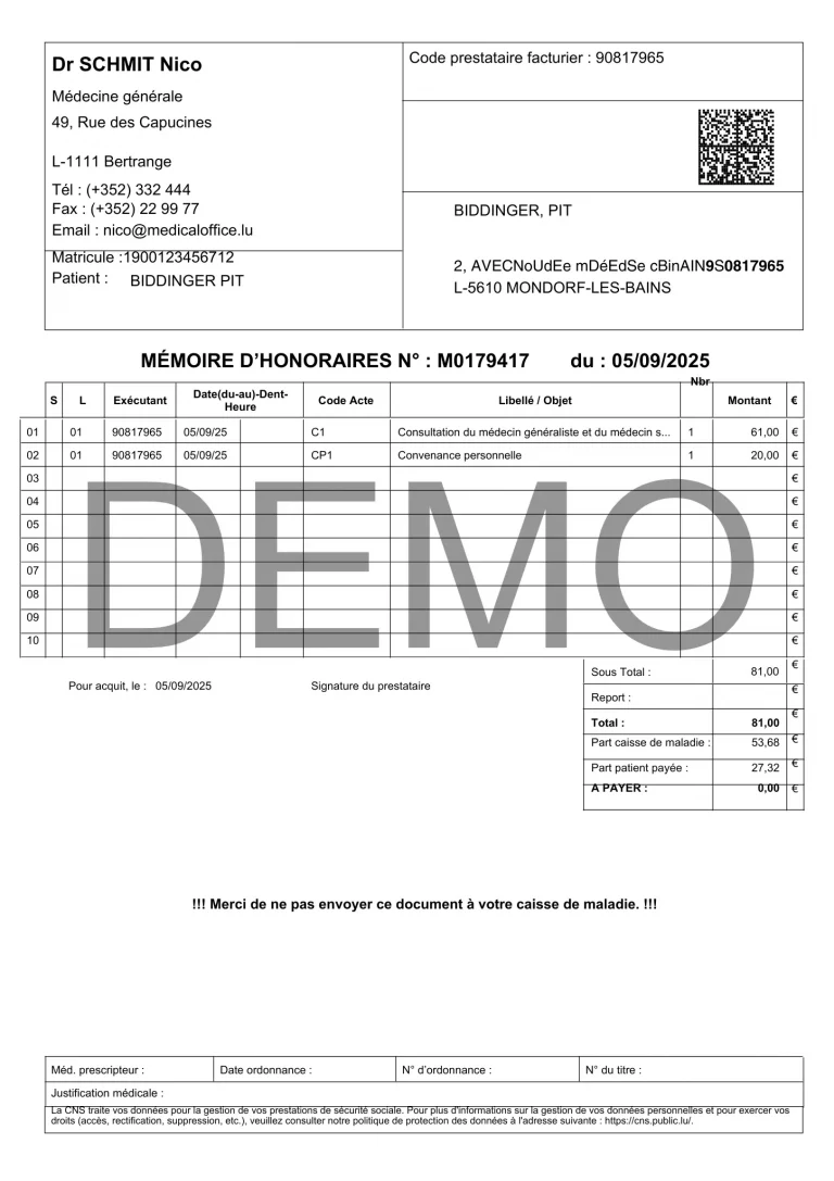 Medical Office est un logiciel de gestion de cabinet médical, conçu pour les médecins et professionnels de santé, conforme aux exigences du système de santé luxembourgeois.